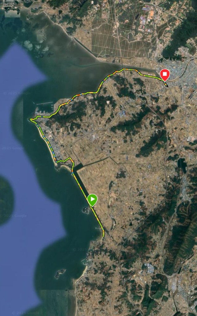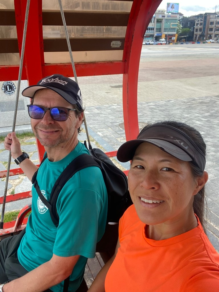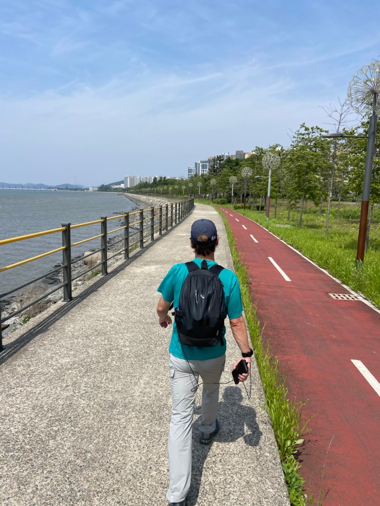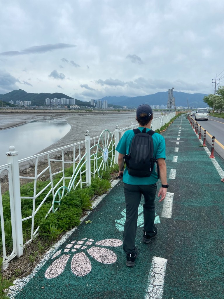 Day 50: Friday 16 May. It’s forecast as 95% chance of rain today so we are a bit cautious heading out this morning 🌧️ You can feel the humidity in the air and it actually gets quite warm…20°c! Today we complete 21km along courses 59 & 60 starting with a long Seawall before heading along Daecheon Beach and it’s surrounding restaurants, hotels and cafes 🏖️ The tourist strip is surprisingly busy and the area is known for its annual Boryeong Mud Festival. We stop at a cute cafe for a break before carrying on past the Skybike ride and onto the next course which is mostly main roads 🚙 We manage to beat the rain home and decide to buy lunch and dinner from Emart to save ourselves having to head out later as it does start pouring down that evening. Tomorrow we head to Seosan where we will spend the next week 🥾