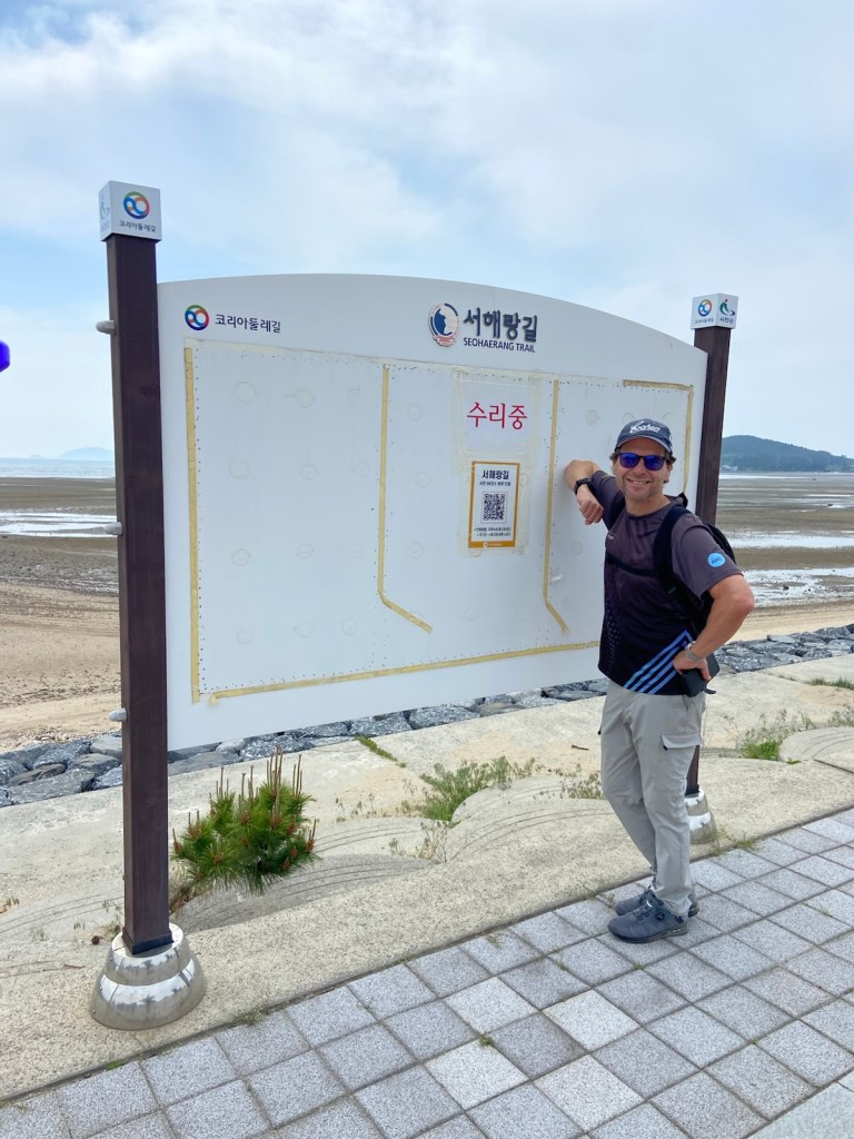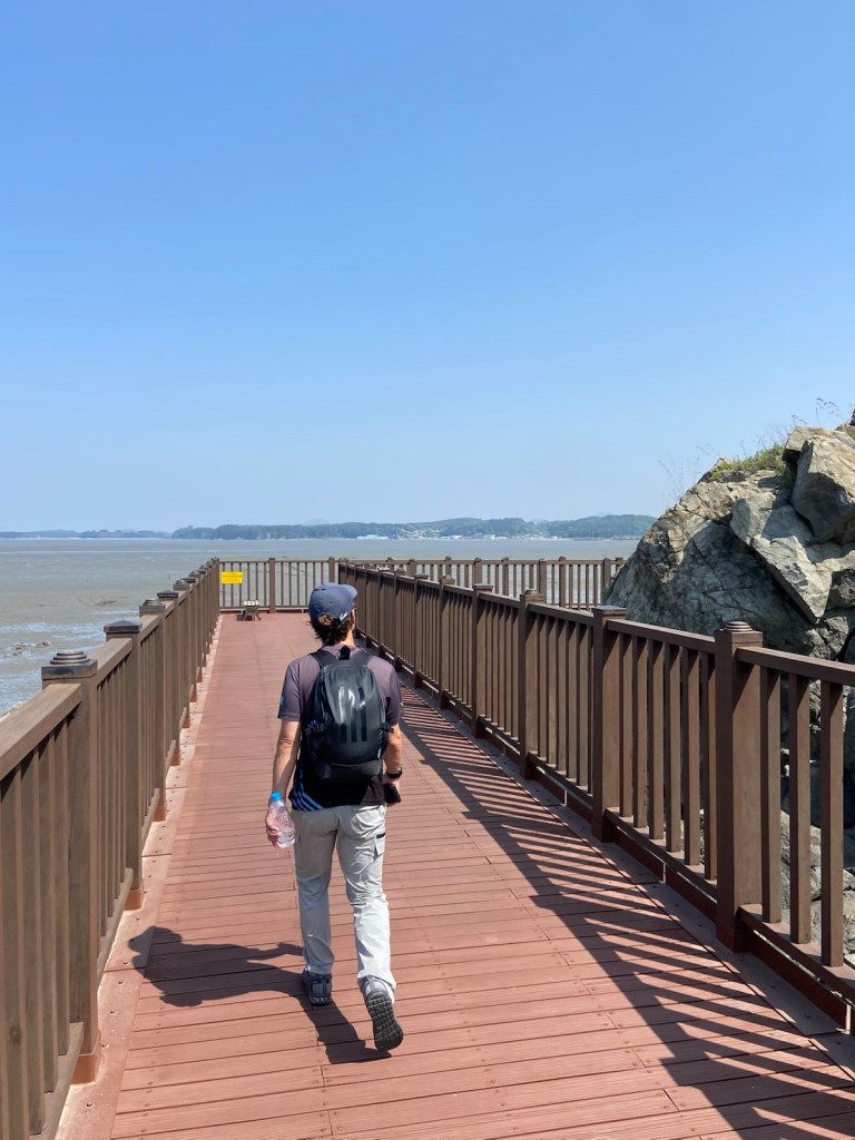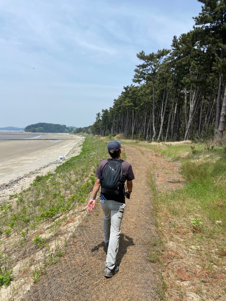 Day 48: Wednesday 14 May. A big day of hiking today, completing 25.2km along courses 56, 57 & 58. Course 56 is a lovely nature trail along the beach and through a pine forest 🌲 There is a sky walk along the course but it’s currently undergoing maintenance and closed off unfortunately. Because we are trying to knock out three courses, after hitting three check points we catch a bus to the next course to save our legs 🚍 Course 57 is a lot of farmland and a bit of a mental struggle until we come across a cute cafe towards the end of the course. The area is full of old camping grounds that look like they were once very popular but now rundown and unused ⛺️ There are a few detours along course 58 due to construction along the Seawall, luckily they are after our finish point where we turn off to get the bus home. We had originally intended to stay in Seocheong but couldn’t find any accommodation so we are staying in another area called Janghang, about 10km south. The forecast has rain over the next few days so we will see how the hiking goes! ☔️