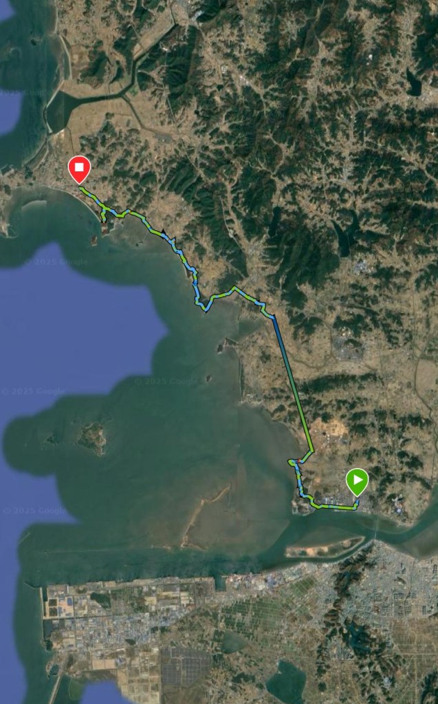 A busy few days travelling from Gimje to Gunsan and Boryeong to tackle a few of the courses between the small towns. A lot of buses were caught, often getting the intercity bus to the next hotel, then a local bus to the next hiking course! The weather is slowly turning into Spring but there is still a bit of rain.