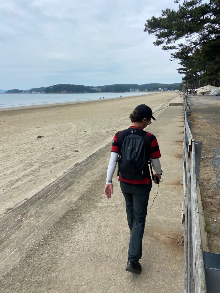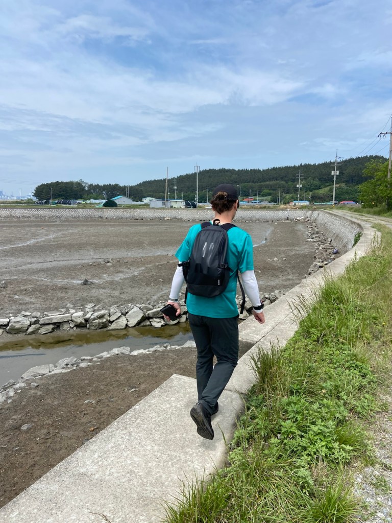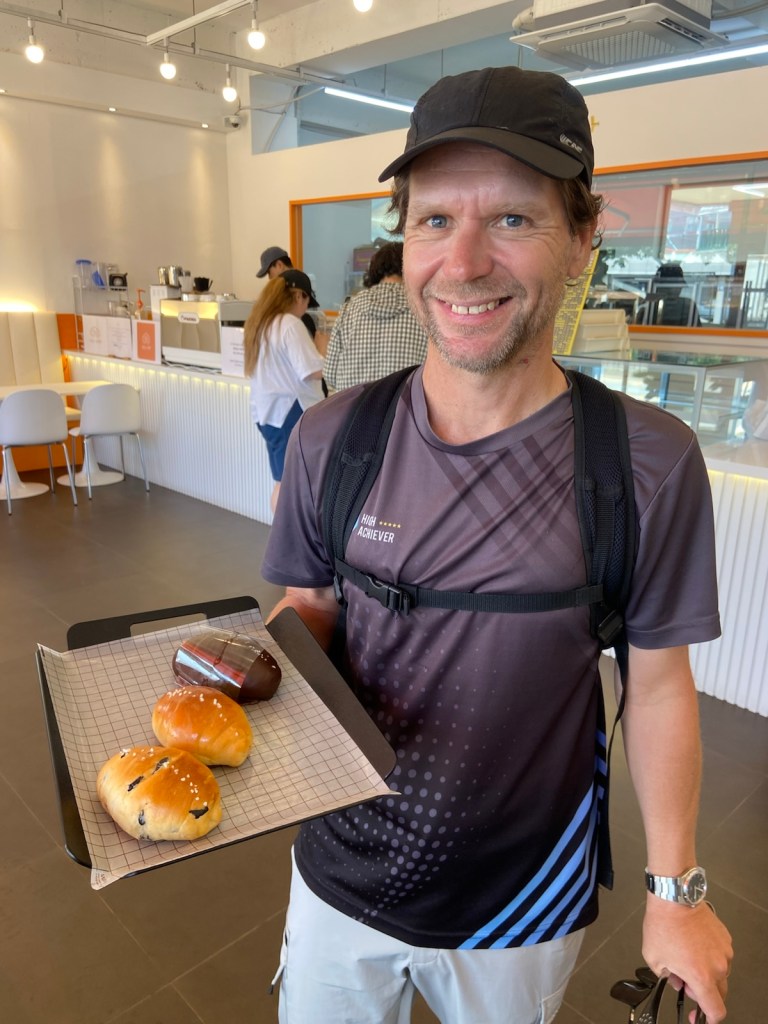 Day 60: Monday 26 May. A shorter 14km hike today along course 67 & 68 🌲 The weather is nice but the air quality isn’t good and you can see the smog in the air. The courses are mostly farmland and seawalls, including another area that has a diversion in case of high tide 🌊 The final check point is along the beach so we decide to check out the cave nearby, which takes us along a few trails, before heading to the bus stop. Local buses have been a great source of anxiety for us this trip! 🚎 Luckily they also provide a form of amusement, including today when an Ahjusshi brings his whipper snipper onto the bus with him. We get back to town and grab some Korean toast for lunch, followed by a visit to the 오늘도소금빵 salt bread bakery 🥐 We have hit the tail end of our hiking adventures, having reached 100 stamps (out of 110), and will be heading to the town of Dangjin tomorrow!