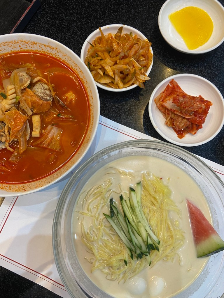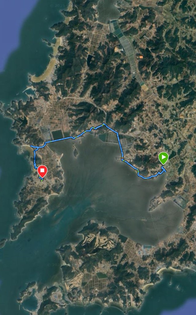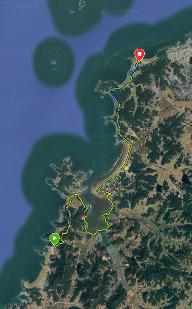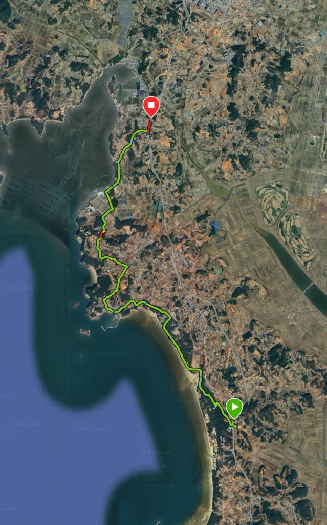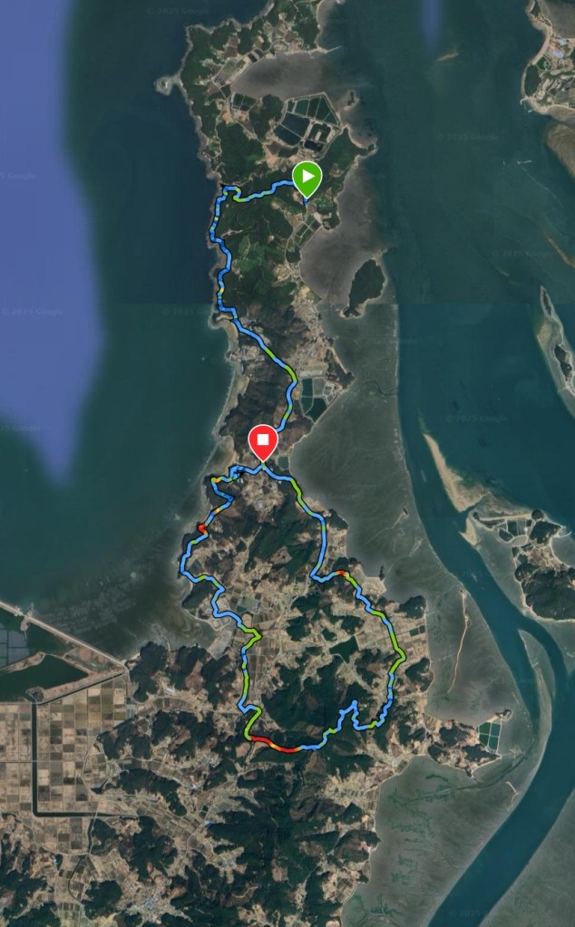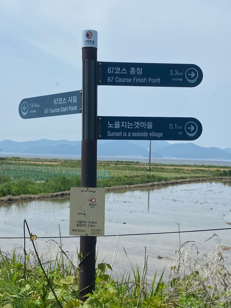 Day 58: Saturday 24 May. A big day in Taean today, knocking out four courses (71-74) over 20km. It rains briefly around 11am but the sun does come out in the afternoon ☀️ Course 72 starts with trails along the beach, followed by a few highways and farm roads along 73. We then head up Humangsan Mountain for course 74 before finishing on course 71 along easy trails and the beach 🏝️ Back in town we drop by a toast and snack place for lunch and a bread shop 행복한빵 (Happy Bread) for their signature white roll. Dinner at a Chinese place 화룡 where they make some really good noodle dishes 짬뽕 (Jjamppong) and 콩국수 (Kongguksu) 🍜 A good day where everything just seemed to fall into place!