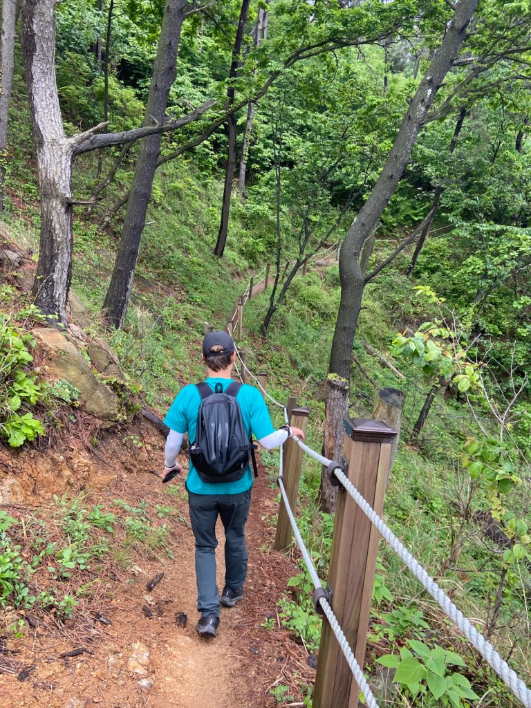 Day 59: Sunday 25 May. A beautiful sunny day today for our 25km hike along course 69 & 70. We had read that course 70 is supposed to be one of the best nature courses to hike so we decide to complete it in its entirety, along with a few check points along course 69 🌲 The first section is a roller coaster trail of ups and downs. We finish it pretty quickly and move onto course 70, which is quite long (19.2km) but very pretty. We pass a lot of hikers along the way who turn out to be a hiking group from Daejeon 🎒 Towards the end of the course we start chatting to a hiker who is sitting by himself. He is part of a hiking group and thinks he is at the very back of the pack so we walk with him for the last few kms 🥾 Turns out he is part of the Daejeon hiking group so we tell him there are plenty of other hikers behind him and when we arrive at the end point he is actually one of the first to arrive. He kindly gifts us his Seohaerang Gil keyring from his backpack and we give him a clip-on koala 🐨 We make our way to the bus stop and drop by a cute cafe before boarding the bus. Back in town we have dinner at the local Inari place 정직유부 / Jeonjik Yubu. We have an easier hike planned for our last day in Taean tomorrow which will be nice as it’s been a while since our last rest day.