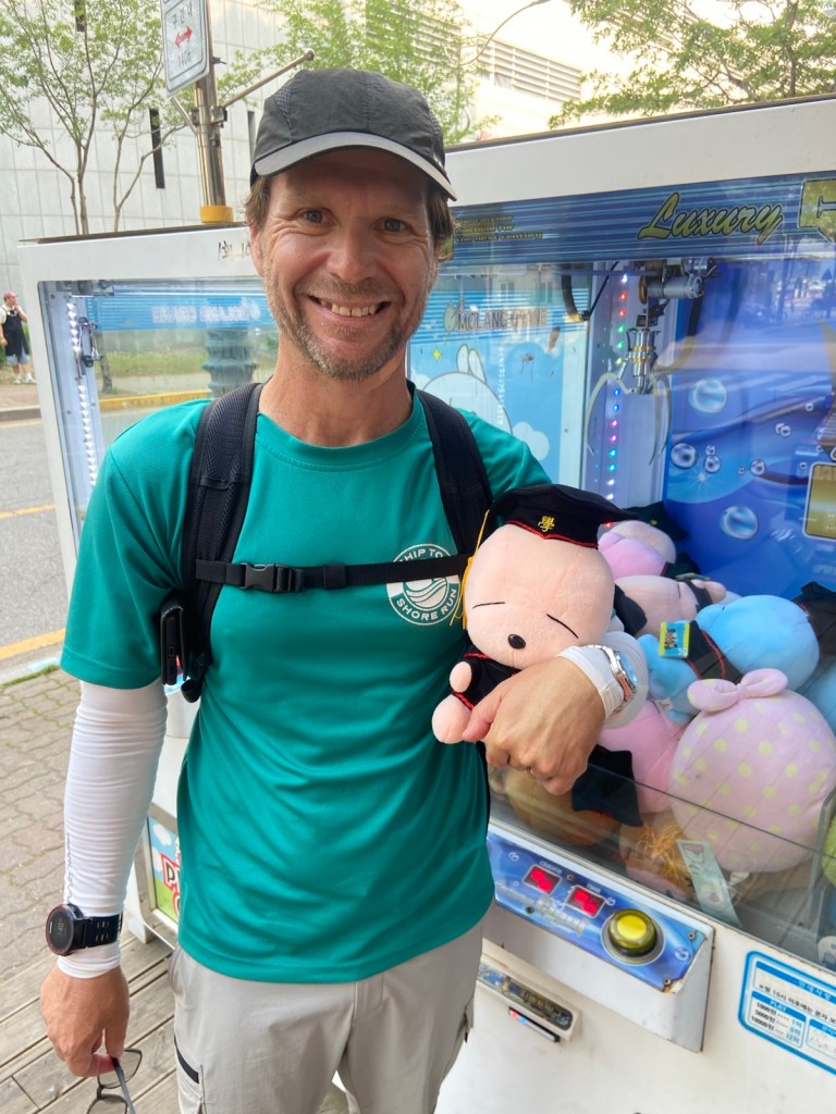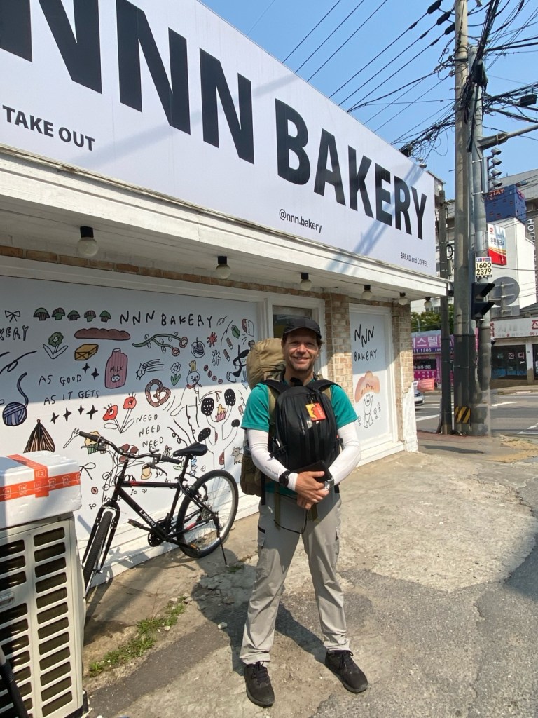 Day 61: Tuesday 27 May. We’ve discovered that we will do (almost) anything for a good bakery. Today we plan to make our way from Taean to Dangjin to complete a few more hikes, but with Seosan at the half way mark we decide to stop off at @nnn.bakery because we love their bread so much 🥐 We catch an early 8am bus and drop in right as they open as it will be a while before we can visit again, probably not until we return to Korea again next year. We buy a big tray of baked goods, have a lovely chat with the owner/baker Harry, and once again he kindly gives us a few extras for the road 🥖 We then catch the intercity bus to Dangjin, drop our bags off at the hotel and get the local bus to complete courses 81 & 82. During our travels we’ve completed some good hikes and we’ve completed some not so good hikes; well this hike was the most boring of them all 😑 The one thing that kept us motivated between the farms and rice fields was trying to figure out what the tall building was that we could see in the distance (as a complete anticlimax, it turned out to be an electrical cable factory) 🏭 We drop by Lotte Mart on the way back to the hotel and between the food we buy there and the bread from this morning, we are stocked up for the rest of the day. Pretty buggered after a long day (20km) and four big days of hiking 🥾 To top it off, Cheye gets a win the claw machine near our hotel!