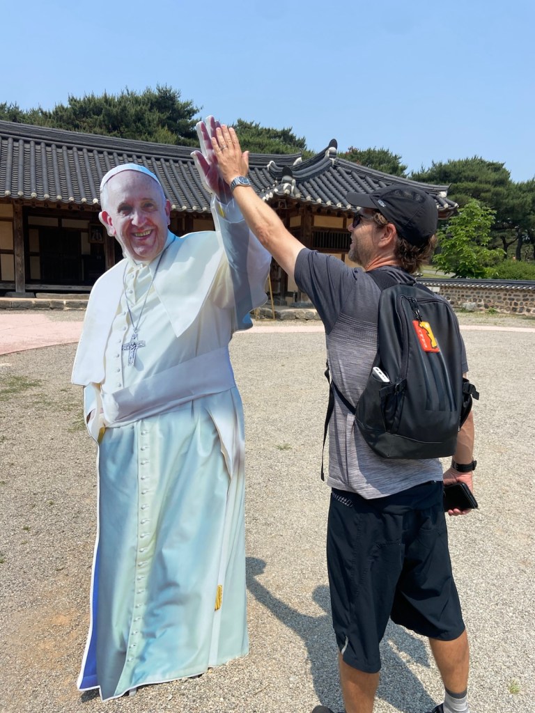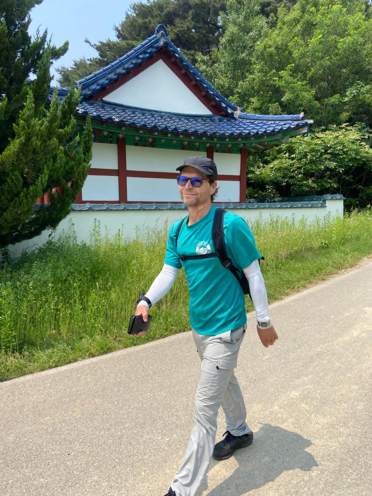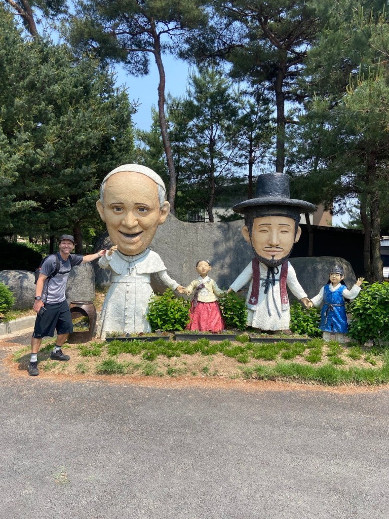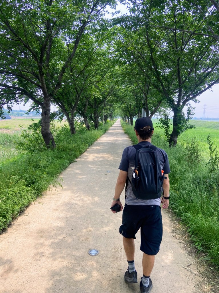 Day 62: Wednesday 28 May. An easier day hiking 11km along branch courses 64 (5 & 6) and a much nicer walk than yesterday. Along the first path we spot many trees where locals have left their empty beverage bottles and aptly name them 병나무 / Bottle Trees. We pass by Hapdeok Farming Village which has a nice river and park 🌳 Stop for a break by Mega Coffee as we passed through Hapdeok, a town where the main street looks like it’s a straight out of 1992. Finished up at 솔뫼송지 / Solmoe Seongji, a holy site that lots of statues of the Pope and Korean religious figures ⛪️ We head back to town and via Lotte Mart (which is closed!) and prepare our things for tomorrow as we are heading back to the big city after nearly two months of being in rural Korea 🇰🇷 Only six courses to go!