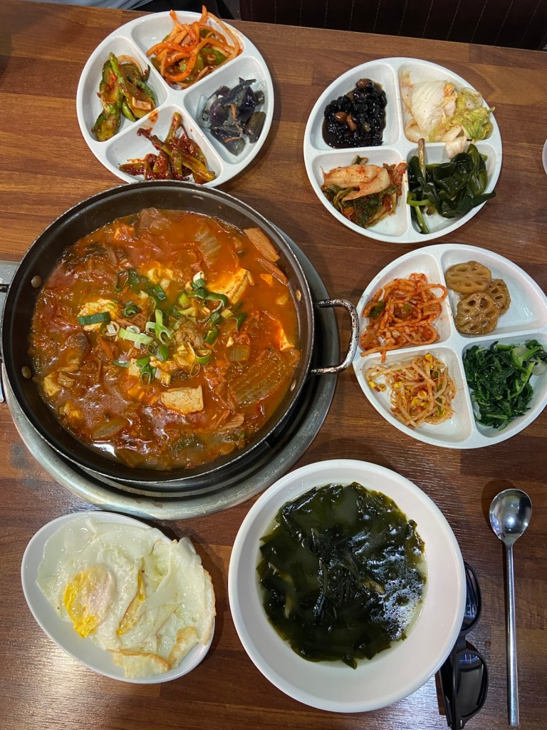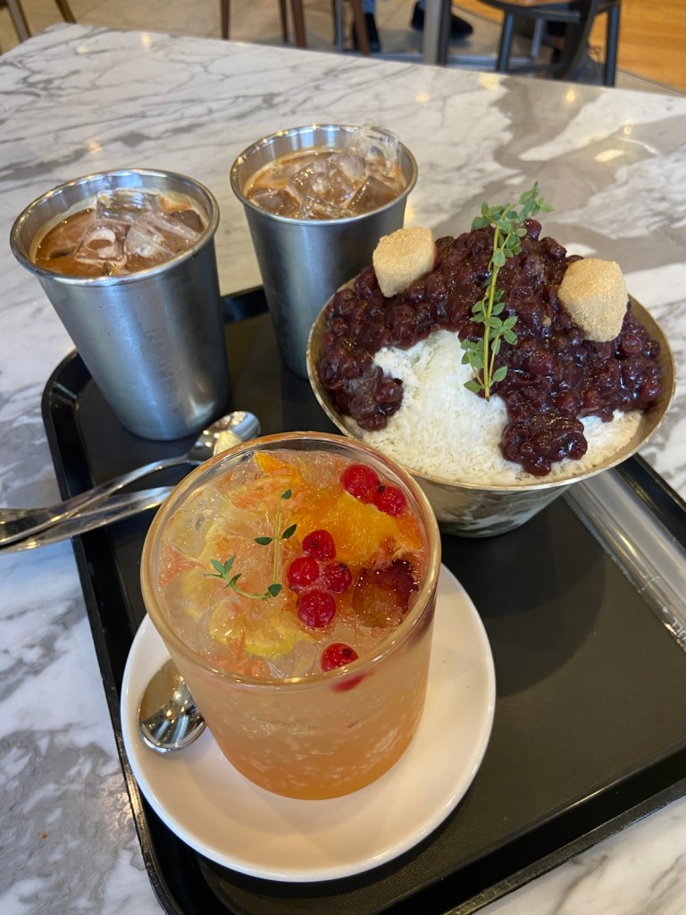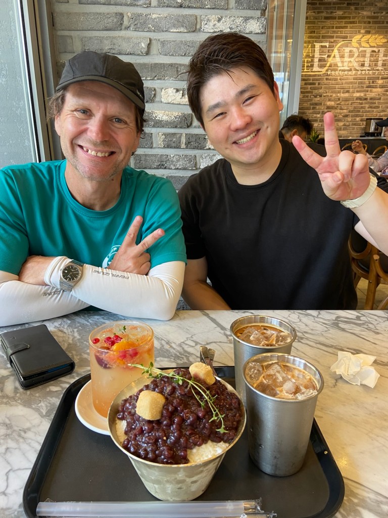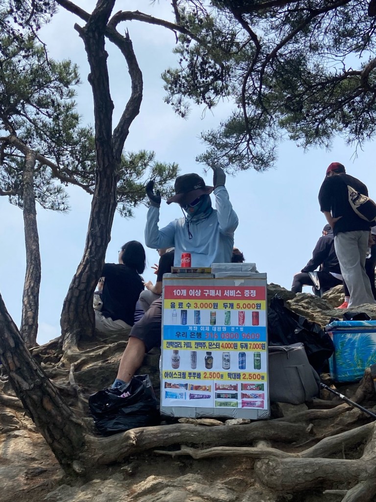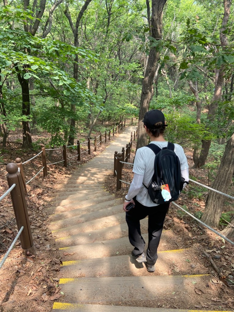 Saturday 7 June: Gwanggyosan / 광교산. Today we take a 17km hike up the highest mountain in Suwon, which stands at 582m ⛰️ There are many different trails but we start from the Munam Valley Entrance, which is about a 5km hike to the highest peak 시루봉 (Sirubong), though it’s another 3km to the start point for us. The first few kms is a ‘VIP’ trail, covered in straw carpet with a gradual ascent. The weather is hot (27°c) but the trails are mostly shaded so it’s fairly cool 🌲 After about 2km we arrive at the first smaller peak 형제봉 (Hyeongjebong), which sits at 448m and has a beautiful view of Suwon. There are heaps of people taking photos and enjoying the view, and even an Ahjusshi selling ice cream, drinks and alcohol 🍺 We decide to continue onto the next peak 비라봉 (Birabong, 492m) but there isn’t much to see from there. The highest peak 시루봉 (Sirubong, 582m) is only another 1.2km hike so we continue on. There are so many stairs going up and down and we notice lots of trail runners competing in an event which turns out to be the Song Pa Trail Marathon 🏃🏻 We get to the top but instead of an amazing view (which is covered by the bushes) we get a rock marking the peak and cute photo installation. There is another Ahjusshi selling ice cream so we buy some which are really enjoyable while sitting in the breeze 🍦 We decide to head back down a slightly different way towards 경기대학교 (Kyeonggi University) which has a bit more of a dirt trail vs the VIP carpet from this morning. It’s a really enjoyable hike and as soon as you’re back on the streets it’s very close to 연무시장 (Yeonmu Market street) where we stop by a local bunsik for a late lunch 🍚 Later that evening we end up at a lovely but oddly named dessert cafe ‘Sniff Sniffers’ for their signature mango cake.