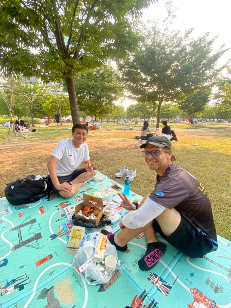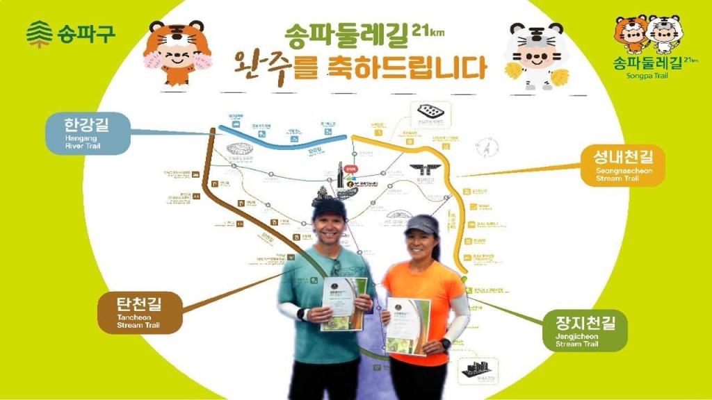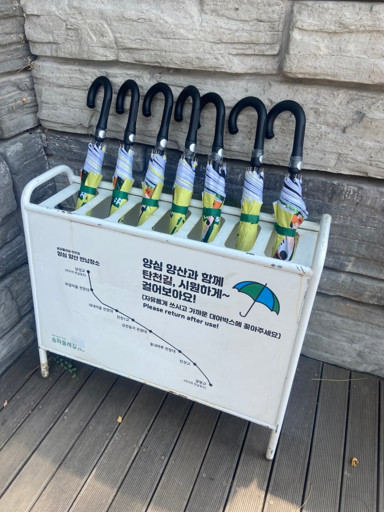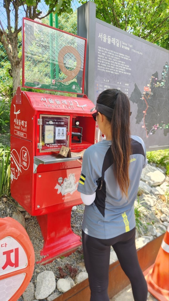 Tuesday 17 June. Songpa Dulle Gil / 송파둘레길. After completing the Seohaerang Gil followed by a side quest, the Seoul Dulle Gil, we discovered a mini side quest called the Songpa Dulle Gil (it’s like Dulle Gil inception) 🥾 So for our last day in Seoul we decide to complete the 21km trail consisting of four courses, completing a stamp book along the way. The trail takes you along a number of streams, finishing along the Hangang River and it’s amazing how many different trails there are in South Korea 🇰🇷 It was interesting to see umbrella stands along the route where you can borrow umbrellas if you get caught out in the rain ☔️ After collecting all four stamps we visit Songpa Tourist Information Centre where they give you a certificate, a cute pin and a tacky but hilarious green screen photo. We have a nice chat to one of the staff members JD, and we share travel stories before heading off to get ready for a night at the baseball ⚾️