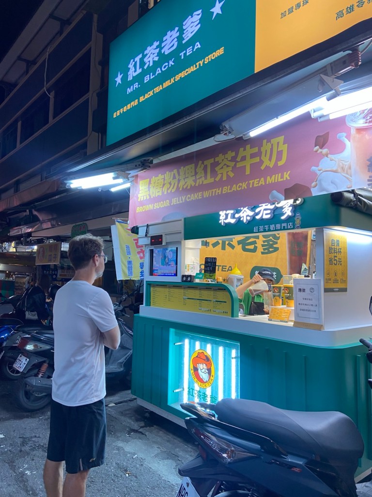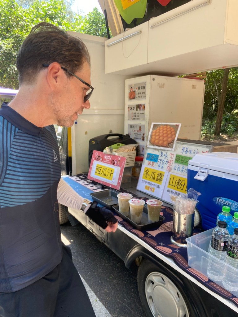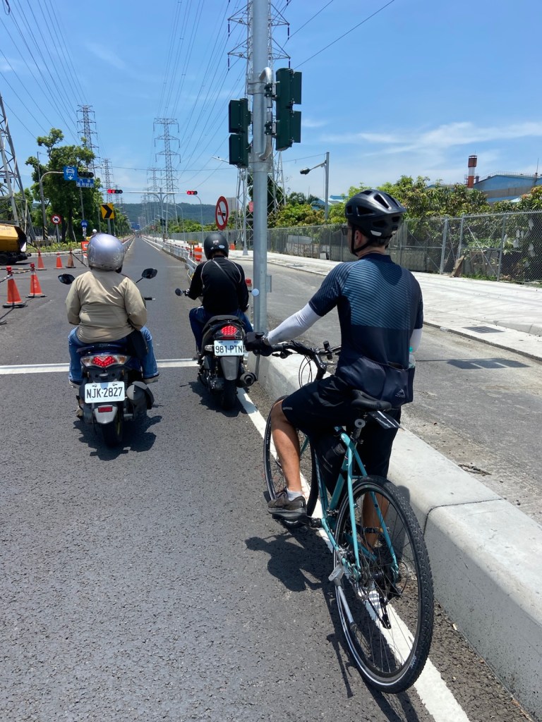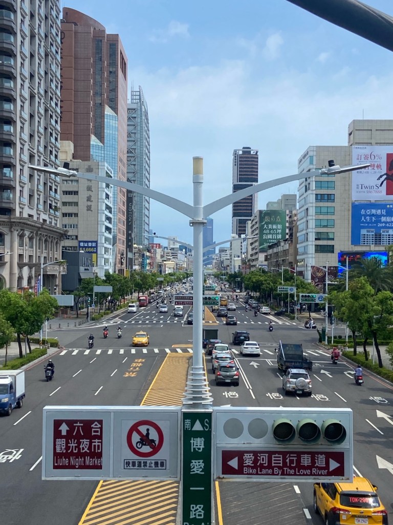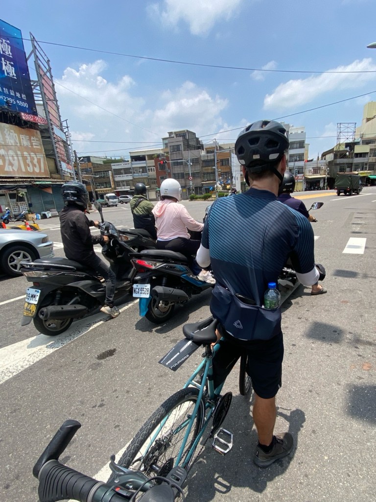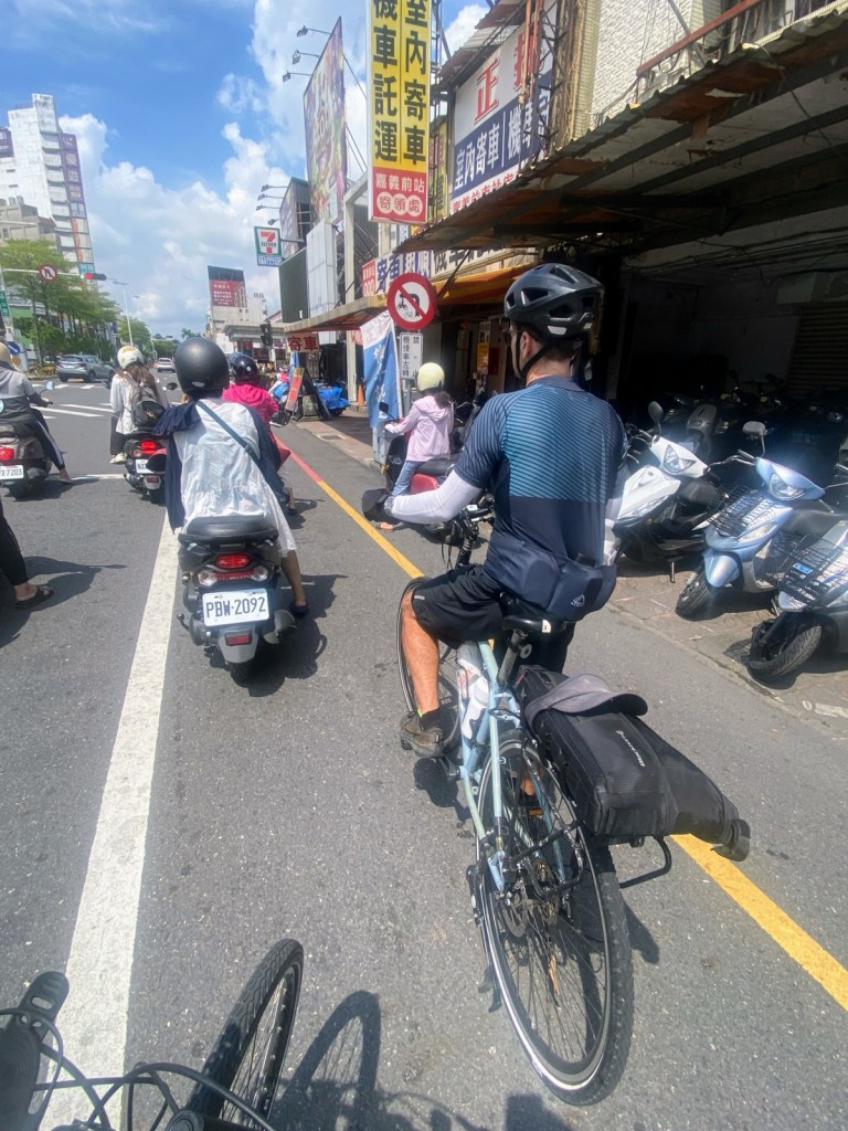 Tainan to Kaohsiung / 51km. Today’s plan is 42km along the main highway until we hit the Love River where we will follow the bike path the remaining 10km. The highway is the same as it has been the last few days – hot, fast and flat 🚙 There seem to be a few detours and road closures, including one due to an accident involving two motor scooters which makes us a bit more cautious. We stop by a 7-11 to grab some more drinks before hitting the river path but it’s closed off when we find it. We take a bit of a detour and get a bit lost but start following another guy on a bike who helps guide us in the right direction 🚴🏻♂️ We veer on and off the path as it’s being rebuilt all the way into the big city of Kaohsiung. After checking into our hotel at 3pm we suss out places for a late lunch and drop into a corner stall that has steamed buns and soy milk on display. That evening we head to Ziqiang Night Market which is pumping and full of more delicious things to try 😋