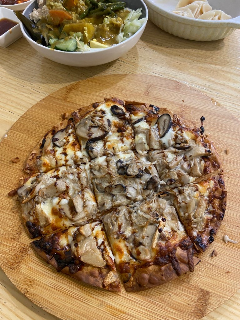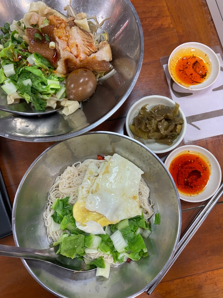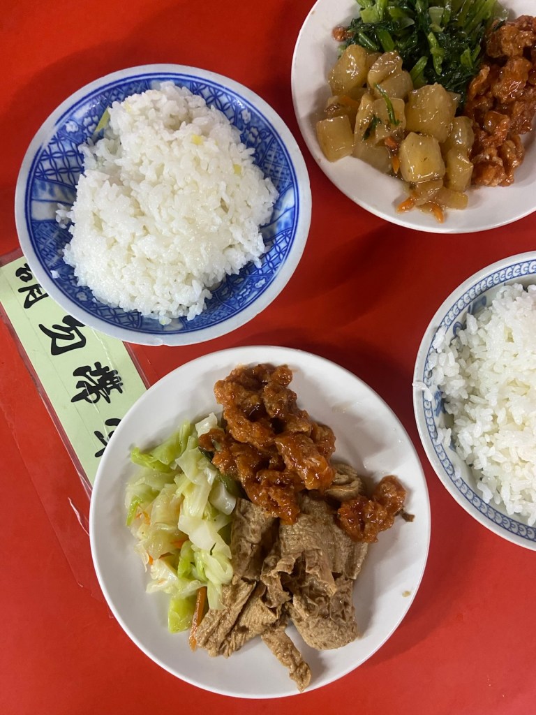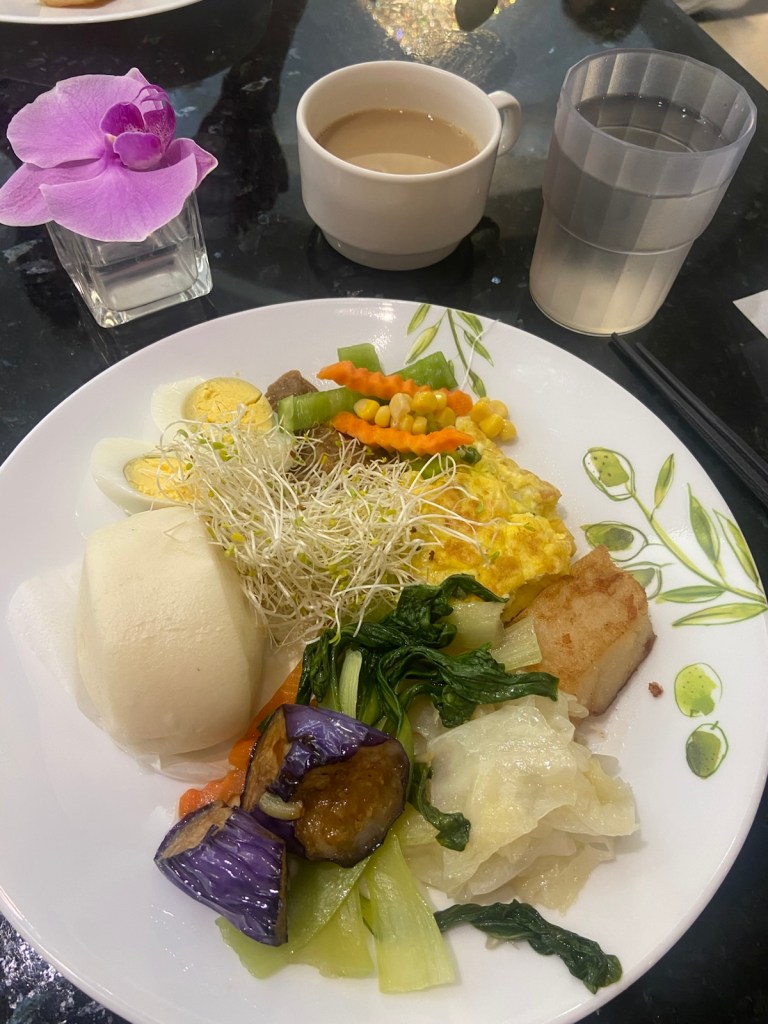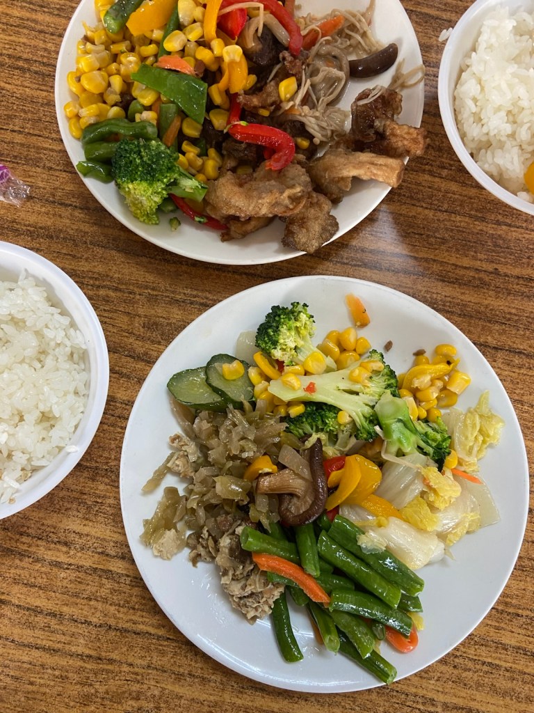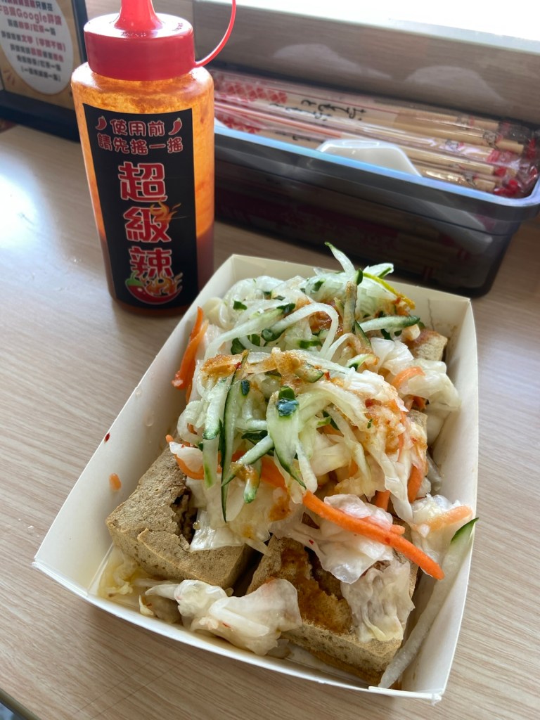 Yuanlin to Chiayi / 61km. The original plan today was to only cycle about 50km to Dalin then catch the train the rest of the way to the town of Chiayi, however we stick to Highway No. 1 and end up cycling the entire way because it ends up being easier than expected 🚲 The weather is still hot but overcast, and rain is forecast from about 4pm although we do feel some drops throughout the day. Despite there being loads of traffic, it’s actually pretty safe cycling on the highway. There is always a dedicated shared lane for scooters and bicycles, and sometimes even a separate lane just for bikes. We make it to Chiayi a little after 3pm and right after we check into our hotel it starts bucketing down with rain…phew! 🌧️ Dinner is a vegetarian buffet nearby which is one of those pay by weight places. We also head to a local dessert place and take a stroll through Wenhua Road Night Market. One thing we have noticed is that no matter where you are in Taiwan it always smells like food, even when you’re cycling down the highway! 🍲