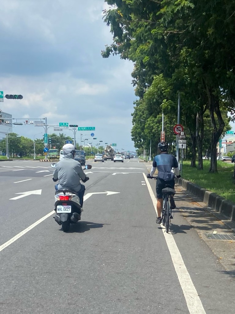 Chiayi to Tainan / 68.6km. After yesterday’s ride we decide to stick to Highway No. 1 again, heading to the big city of Tainan. The forecast says rain will hit around 3pm so we decide to leave a bit earlier after a good breakfast at the hotel. The ride feels easy as we average between 24-30km/hr 🚲 As we approach Tainan the traffic becomes more chaotic and we have to stop at traffic lights every 500m or so. The funny thing we notice is that all the traffic lights are in sync along the long straight roads, so no matter how many green and yellow lights you make, one of the red lights will eventually catch you 🚦 We make it in just before the rain hits and drop into a 7-11 for some lunch. There is a small market (Houjia Sunset Market) near our accommodation so we have a browse and pick up some bread, drinks and dessert for later 🧁 Our hotel is a family friendly place with themed rooms. Some of the rooms even have slides or racing car beds in them but we get the sky-themed one which is still very cute ⛅️ We head out in the rain to a place called Crazy Vegan for dinner which is really good. Taiwan not only has an abundance of food at your doorstep, but so many vegetarian places too. You will never go hungry in this place!