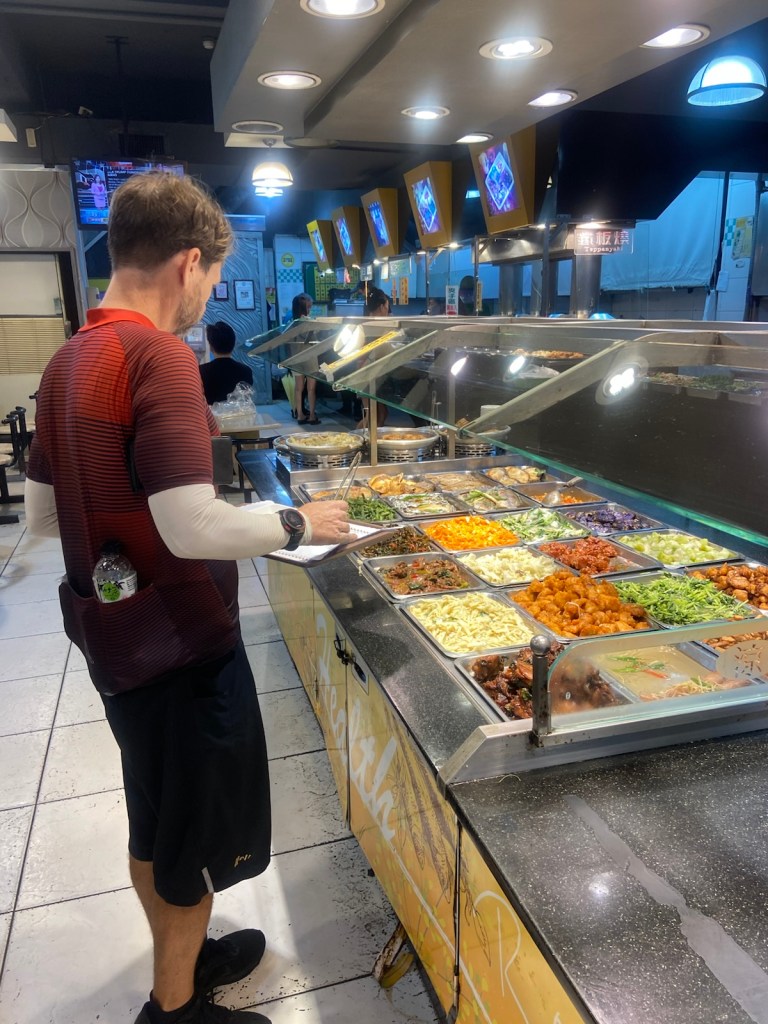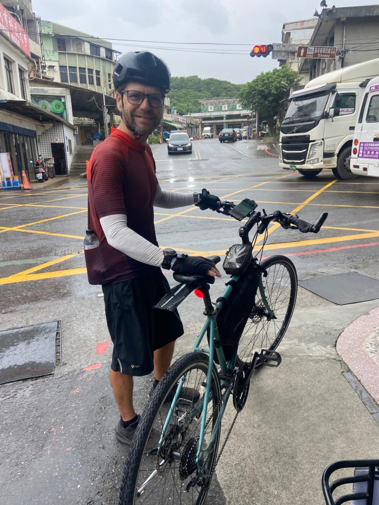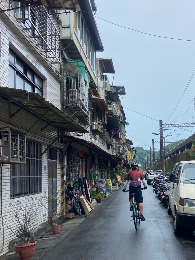 Fulong to Keelung / 35km. A rainy day today! ☔️ We’ve been pretty lucky in terms of the rain holding out when it has been forecast but today it didn’t hold back and rained right through the day and into the night. One positive is that it’s quite cool compared to the hot days we had at the start ☀️ We take the main highway to get out of Fulong but the traffic is quite chaotic so luckily Google maps guides us onto some back roads. We pass through two fairly long tunnels (about 3km each!), one uphill and one downhill, before arriving in Keelung 🏙️ We drop into a busy buffet place for lunch then take a wander to Keelung Port and Marine Plaza and notice the city still has a lot of old style buildings still in use 🏚️ Our hotel is not far from the night market but it continues to rain throughout the night so we decide to skip it and stay local for dinner. We are only about 40km from Taipei so we intend to finish our cycling tomorrow, a day earlier than planned 🚲