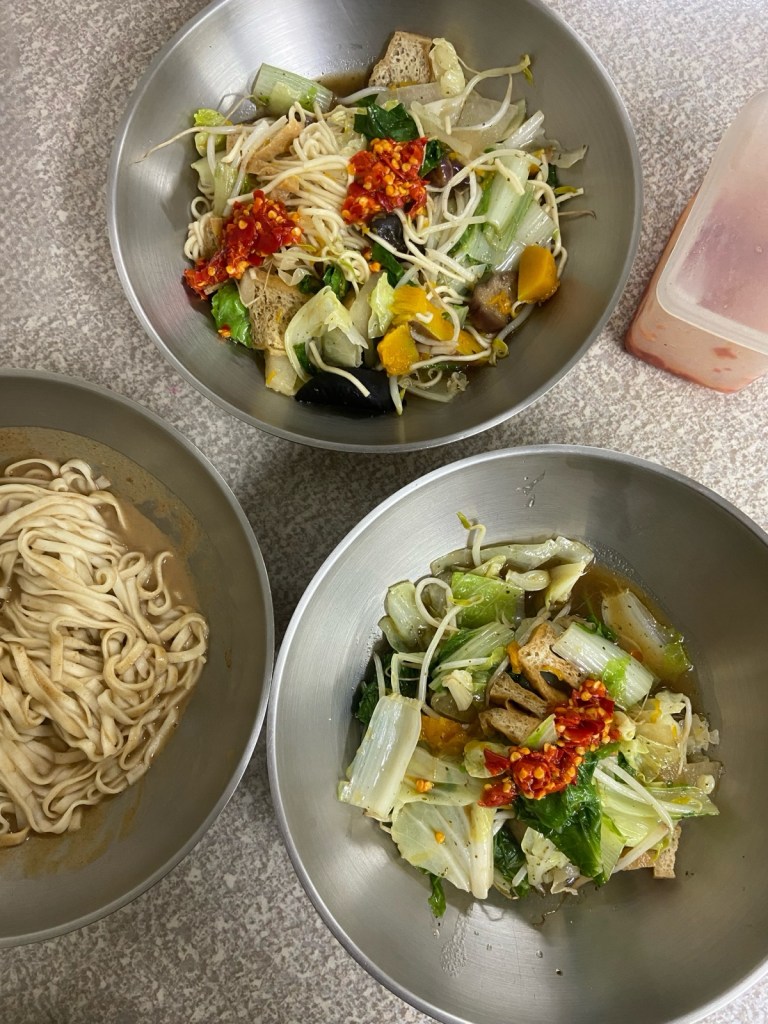 Hualien to Xincheng / 25km then train to Luodong. It’s still raining this morning but it eases as soon as we start riding ☔️ Our destination today is Luodong but the route there has many tunnels that aren’t bike friendly. The suggested itinerary from several different sources is to cycle to Xincheng then catch the train towards Su’ao. We decide to go a little further to Luodong as it’s a bigger town with more food and hotel options 🏨 Our route today consists of highways and side roads through the local villages which is really enjoyable to cycle through and has amazing views of the mountains. We pass by many stray dogs along the roads but they are all the chilled friendly type 🐕 We arrive at Xincheng station but the next train isn’t for two hours (1:44pm) so we cycle to a nearby Family Mart for some lunch. We reckon Taiwanese Family Marts are on par with, if not better than, the ones in Japan. Once again the train is full of people sporting their bicycles, showing how cycle friendly this country is 🚆 We arrive in Luodong just after 3pm and check into our hotel before popping out to wander the town. Luodong Night Market is just down the road and it’s one of the best night markets we’ve been to so far – it’s absolutely buzzing, and it’s only Monday night! 🍢 We grab some soup dumplings, Jianbing and long potatoes, which are all super yum. This may be the last night market we’ll see before we make it back to Taipei on Friday; it’s all smaller towns in our final few days of cycling 🚴🏻