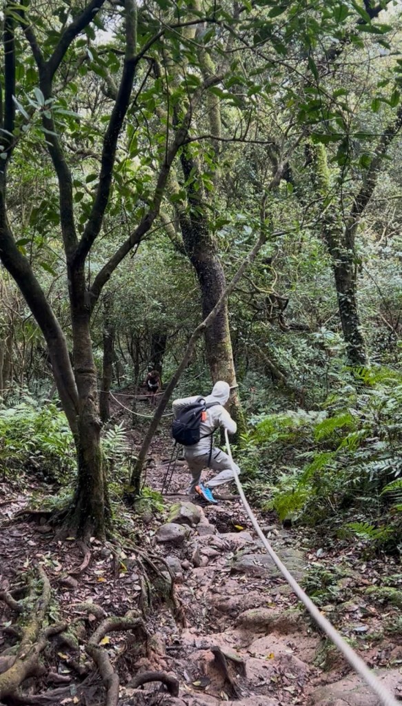 We past through some farmland with locals selling freshly picked produce in front of their houses. Although it was nice to hike in the cooler weather, the views were nonexistent and mist-filled, and the rain made the steep sections extremely muddy and a little dangerous for rock scrambling.